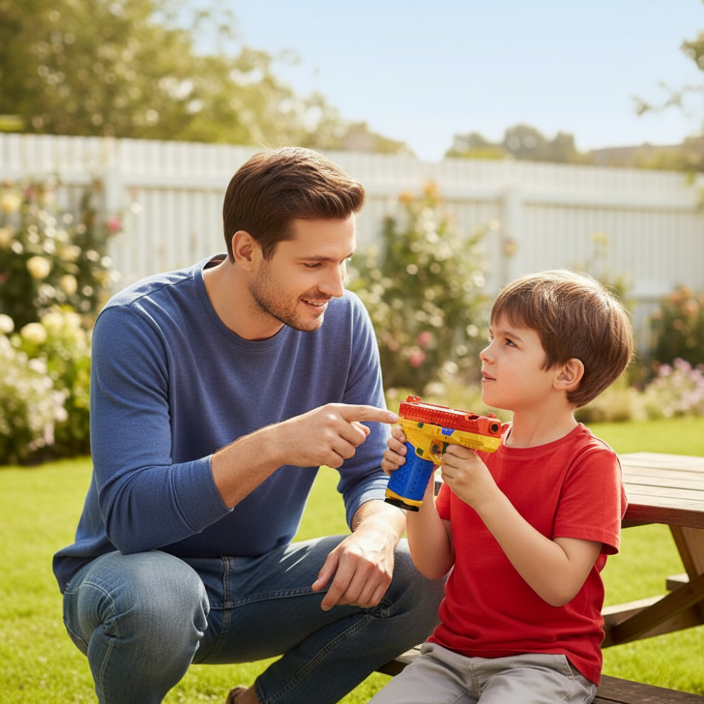The Block 17 gives kids a hands on way to learn respect and basic safety rules without any of the risks of a real firearm. Its bright goofy design keeps the experience harmless while still letting parents walk their kids through proper handling, responsibility, and awareness in a safe controlled setting.