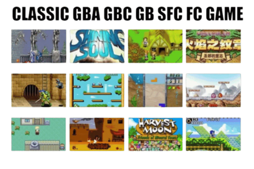 You can explore over 2,000+ legendary games on the X9 console: MAME, FC, GBA, GBC, GB, MD, SFC, NEO, CPS1/2 all in one sleek handheld