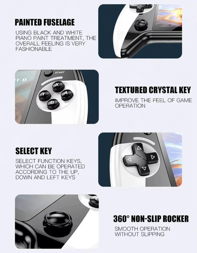 Every part of the X9 is built for smooth and comfortable gameplay. From the textured buttons to the non slip analog sticks and high gloss finish, the console feels like a real premium controller that kids and adults love to hold.